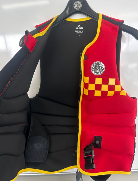 The E-Bomb Buoy Vest features padded E5 neoprene, a kidney belt with single buckle, seamless underarm construction, and ergonomic design for ultimate flex and freedom of movement during water sessions.