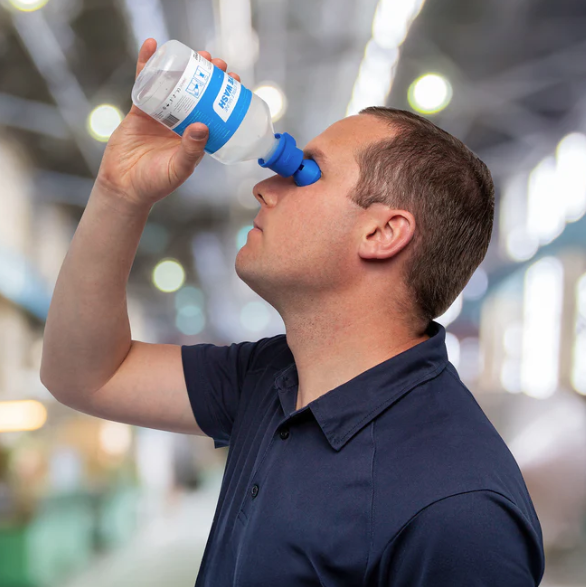 Includes an integrated eye shower to improve flow concentration on the affected eye.